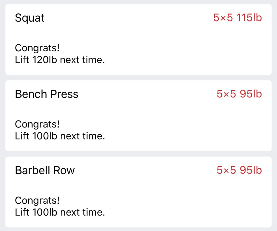 For lifts, I’m now using an app called Stronglifts, as a recommendation from a friend of mine. Today was the first day of the routine.