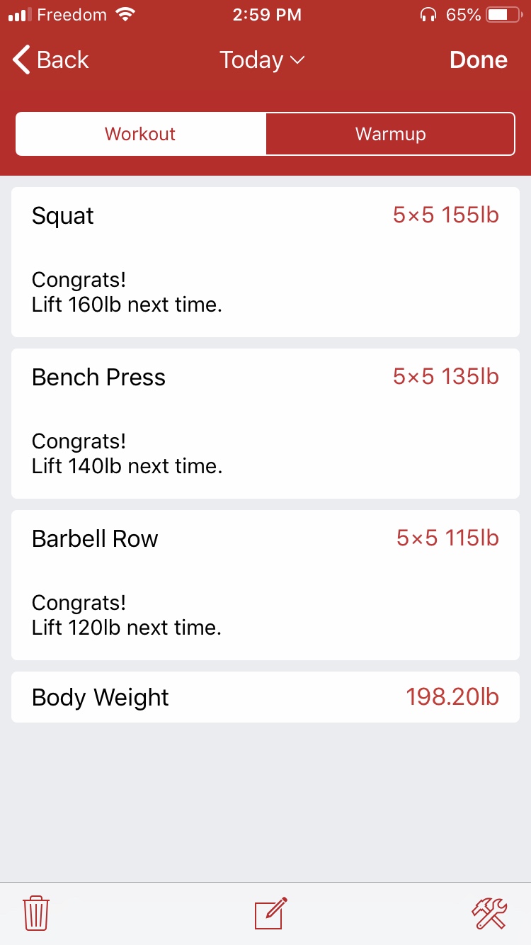 Today I did Workout B of the ABC Workout.