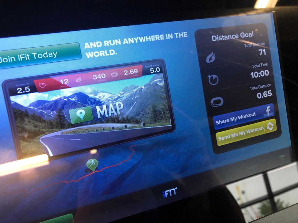 1.8 mile on the treadmill: Hurt my feet, just walked for 10 minutes.