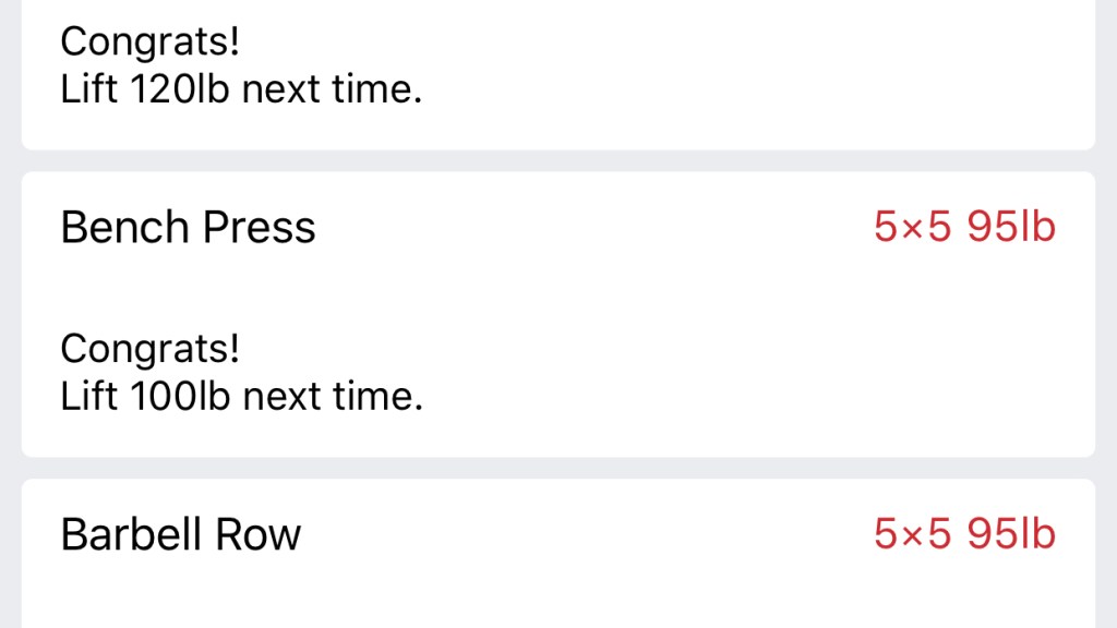 Arms Biceps bar curl: Last time: 3 sets of 12, 50lb Today: 3 sets of 12, 50 50 60lb: failedContinue Reading